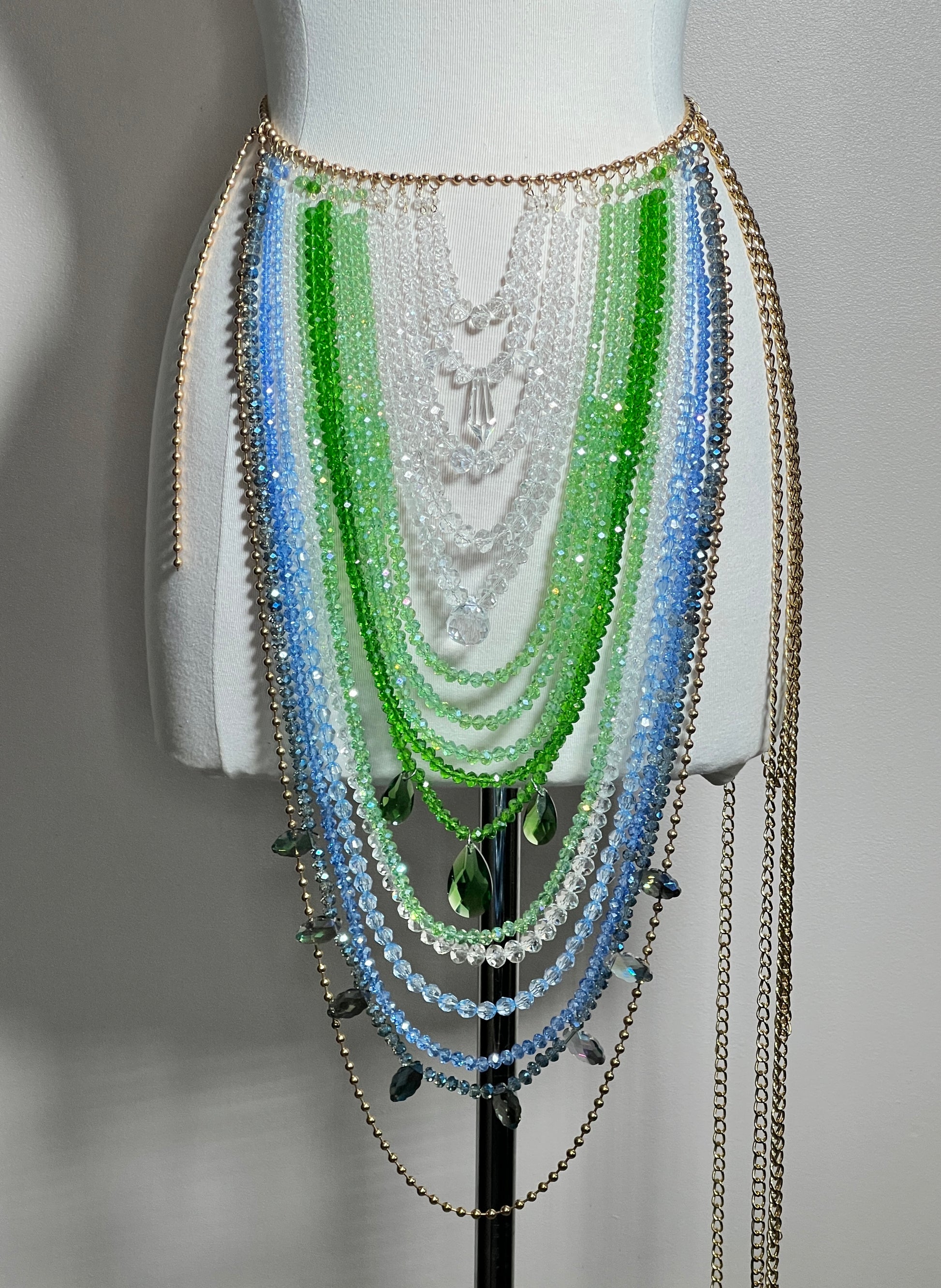 Handmade beaded top with various beads in many shapes and sizes. With adjustable silk ribbon for perfect fit. MUST be handled with care as it is made from delicate materials.